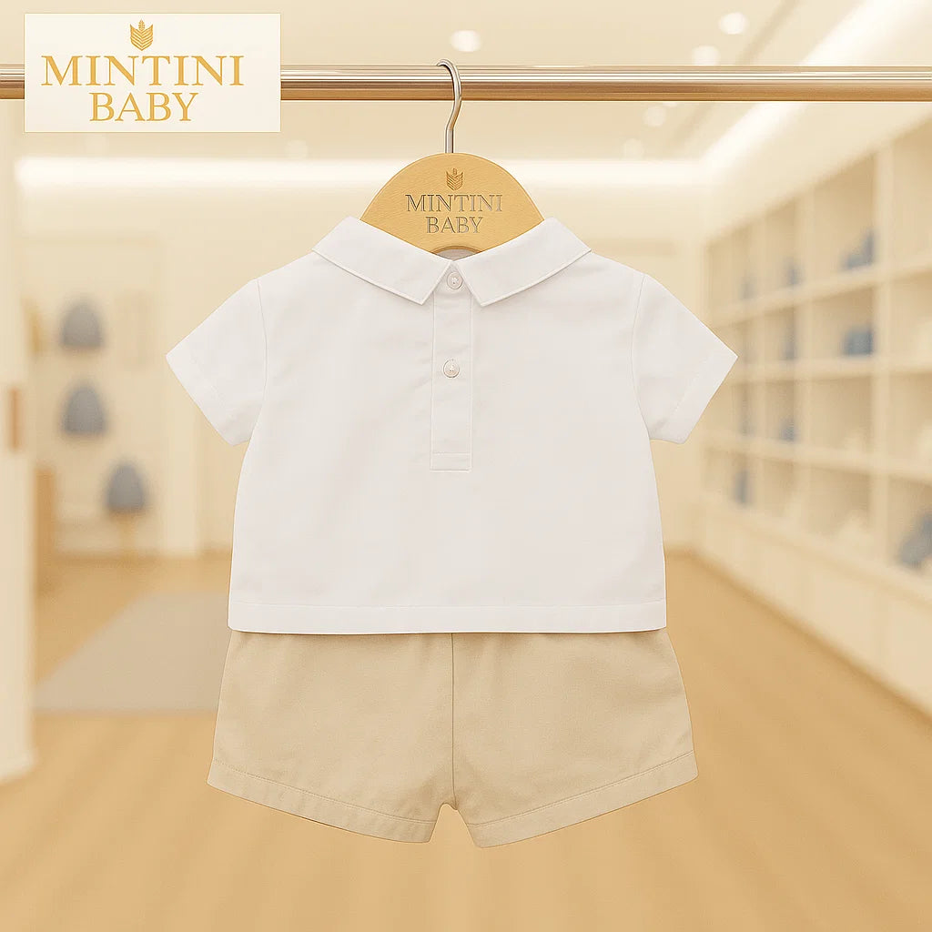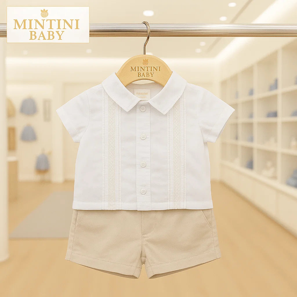 Mintini boys two piece Shirt & Short set - White/Beige
